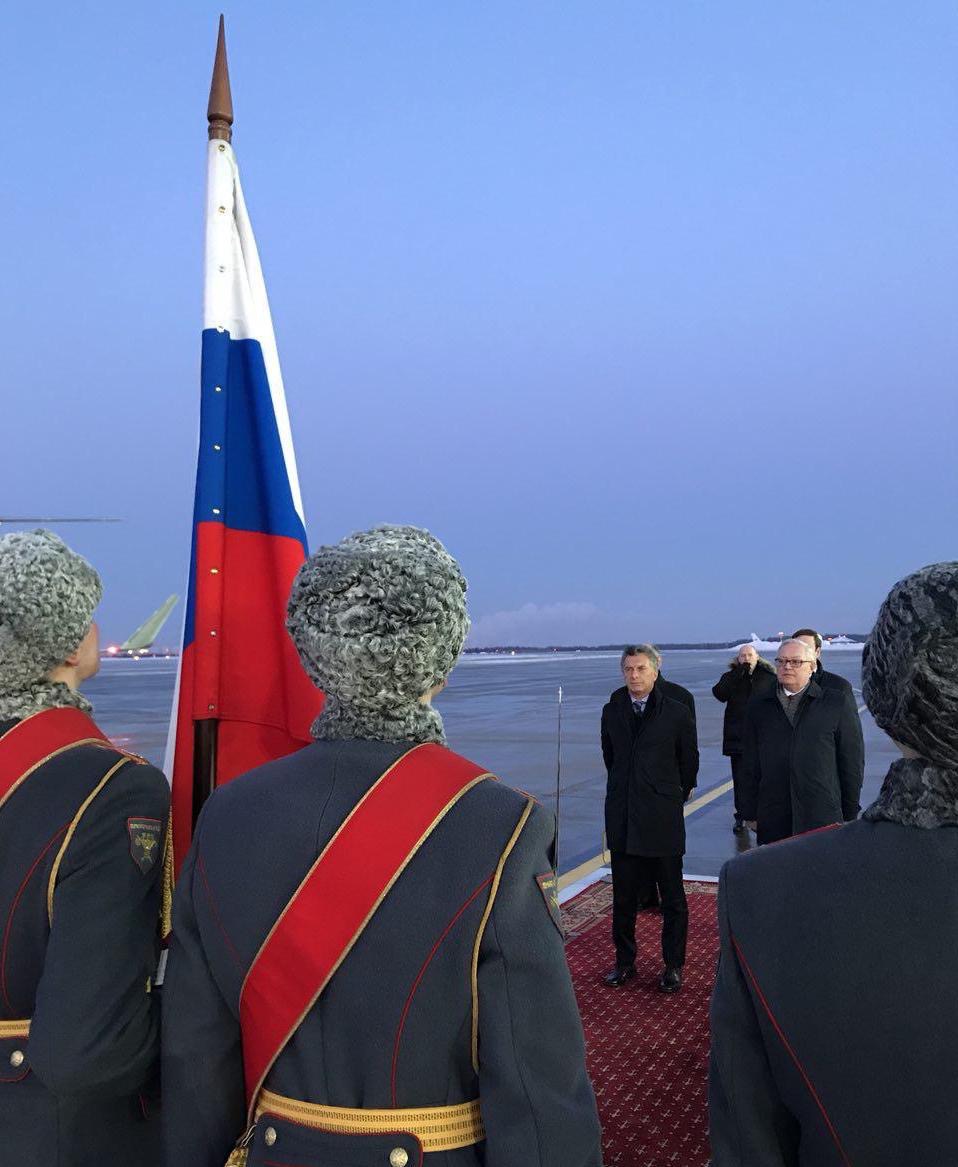 Macri fue recibido en la estación aérea por el viceministro de Asuntos Exteriores de Rusia, Sergey Ryabkov; el embajador ruso en la Argentina, Víctor Koronelli, y el embajador argentino ante Rusia, Ricardo Lagorio.