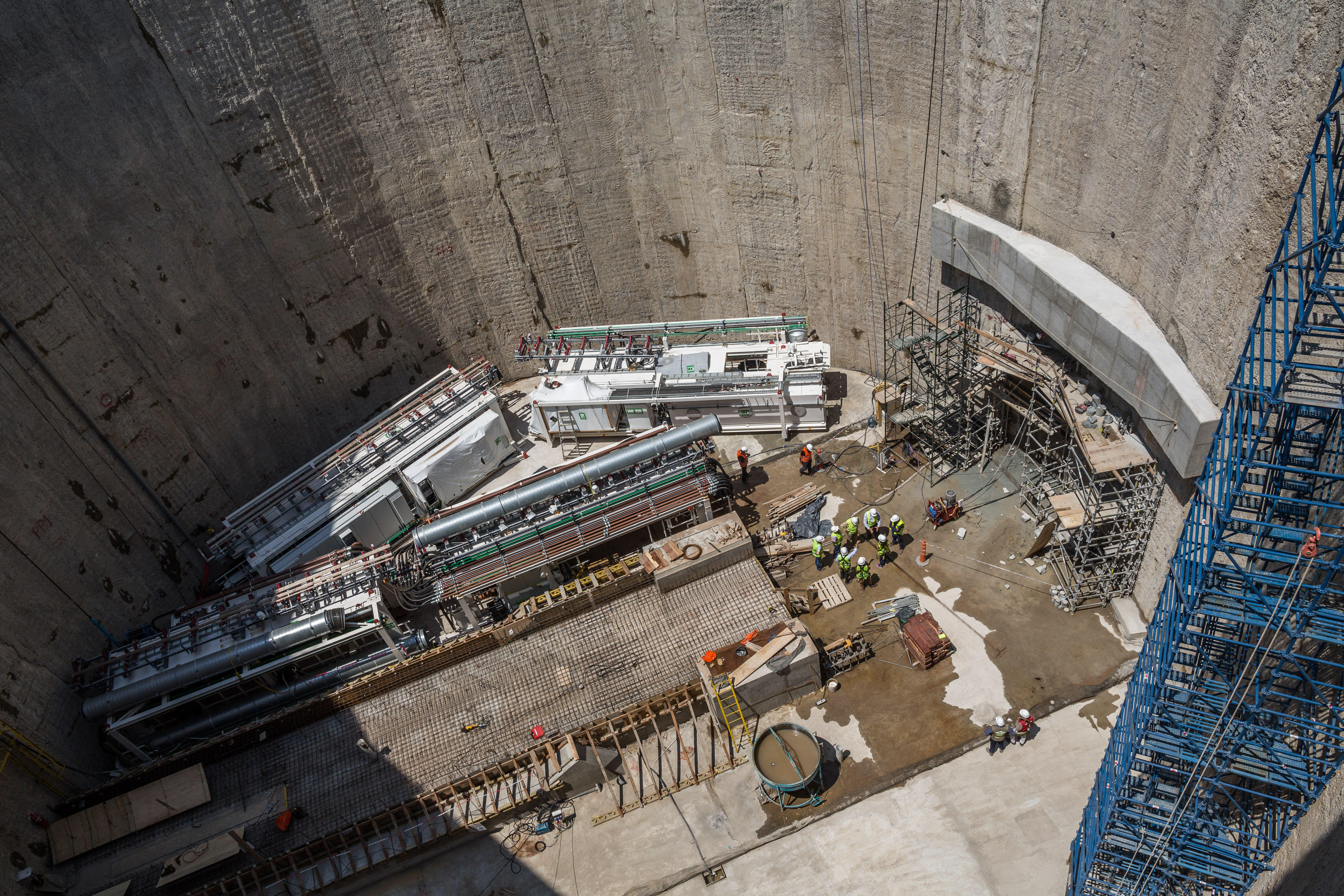 Ya se terminó la construcción del pozo de ataque en la Costanera Norte, que tiene 35 metros de diámetro y 25 de profundidad. Por ese gigantesco foso de concreto descendieron las partes desmembradas de la tuneladora, para comenzar la obra.