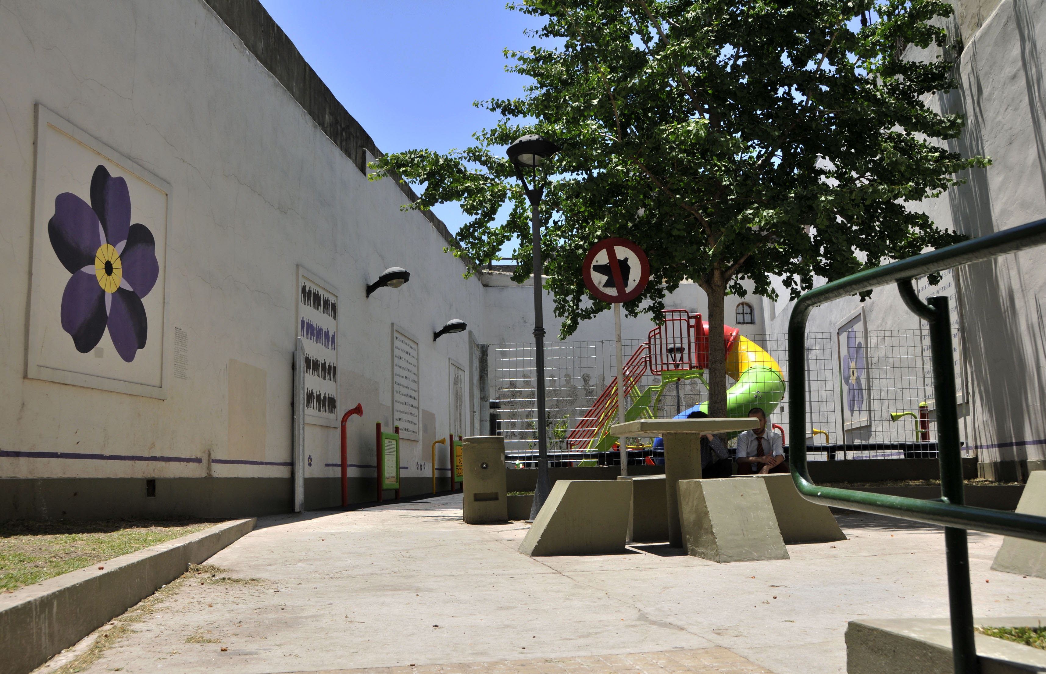 Se incorporaron diversos juegos (set de teléfonos, resortes, muros escaladores en las medianeras, pórtico integrador, panel TA-TE-TI y un panel braille), especies vegetales nuevas y siete bancos topográficos.