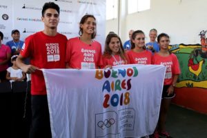 La bandera de los juegos Buenos Aires 2018 en el Aconcagua