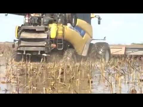 Las imágenes registradas muestran la cosecha de girasol en un campo completamente inundado en la zona de Bolívar.