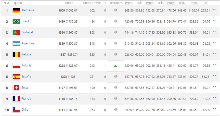 La FIFA dio a conocer el ranking con las mejores selecciones del mundo y la de Argentina continúa en el cuarto lugar con 1359 unidades.