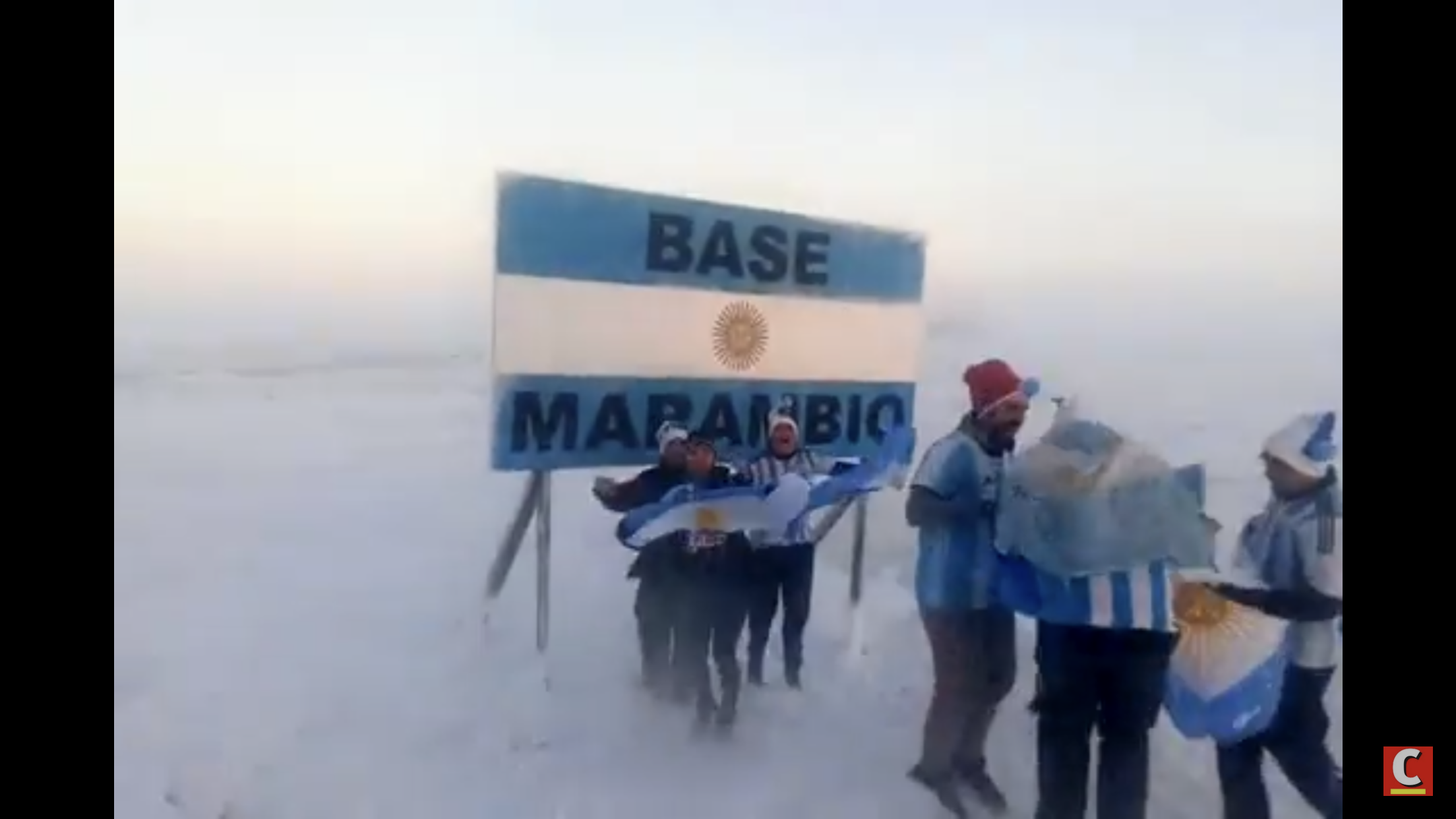 Pero una que dio la vuelta al mundo fue sin lugar a dudas la de un puñado de hinchas argentinos que salieron a celebrar en la Base Marambio.